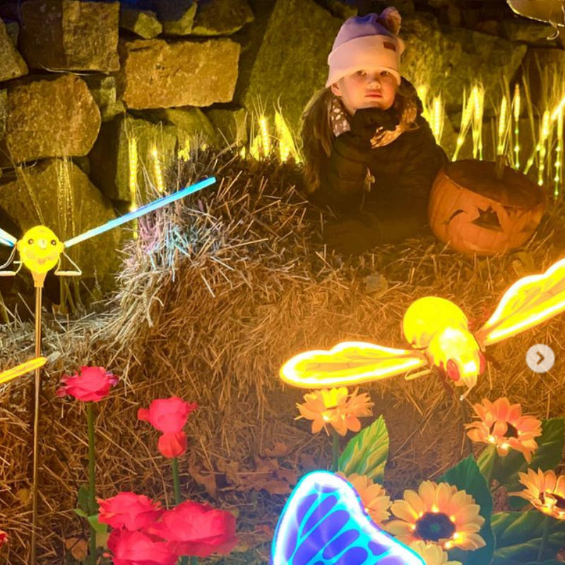 pimeyttä. Puistoon on rakennettu hyväntuulisia installaatioita sadonkorjuun ja